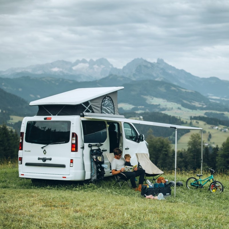 Puede utilizarse junto con tiendas de campaña de techo, cajas portaequipaje u otros accesorios montados en el techo, brindando una solución versátil para ampliar tu espacio exterior en segundos.