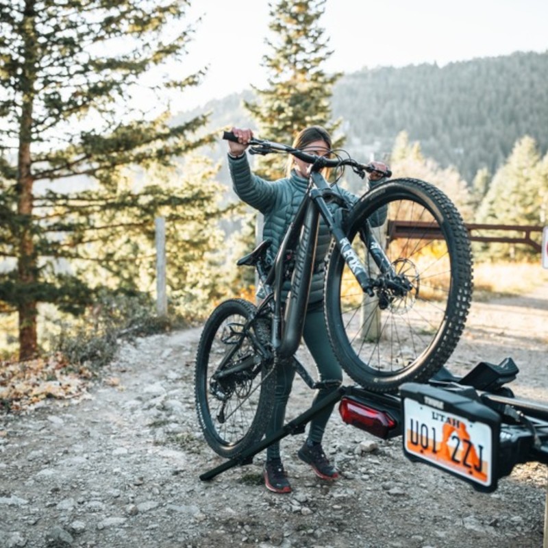 - Permite cargar la bicicleta sin necesidad de levantarla, simplemente rodándola hasta el portabicicletas.