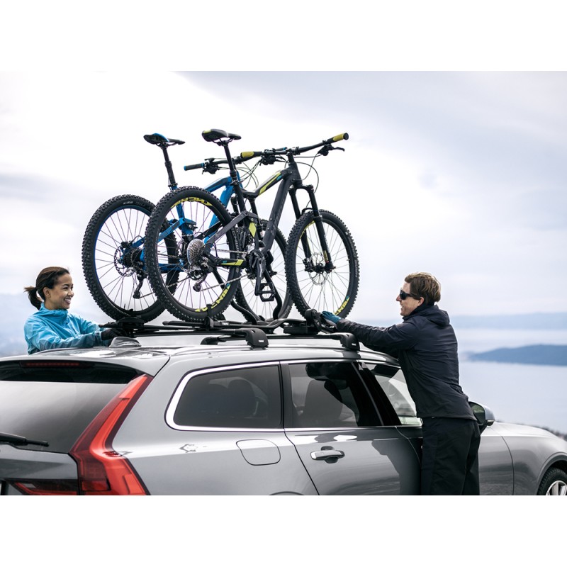 - Sistema de candado integrado: fija la bicicleta al portabicicletas y el portabicicletas al portaequipajes de techo (seguros incluidos).